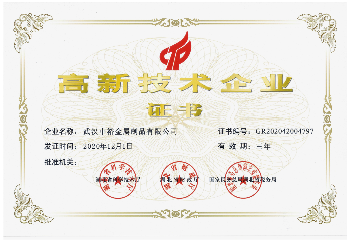 武漢中裕金屬制品有限公司(以下簡稱公司)成立于1996年8月,民營私人獨資企業。2010年8月投資1800余萬元,在前川油崗工業園征地20畝,新建5000平方米的生產車間和1100平方米的辦公大樓,2011年8月全部峻工投入使用。